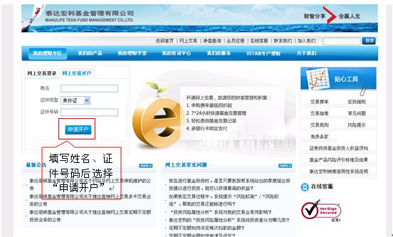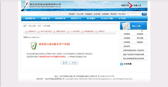 成功开通泰达宏利基金网上交易,点击“登录”即刻进入登录页面