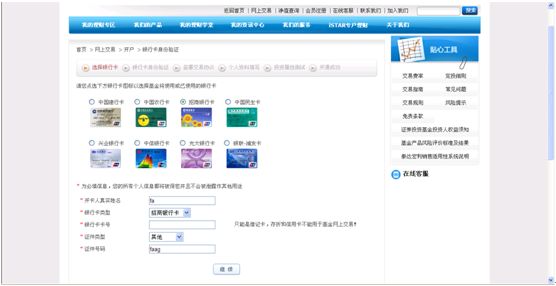 进入网上交易开户页面,填写姓名、证件号码进入开户