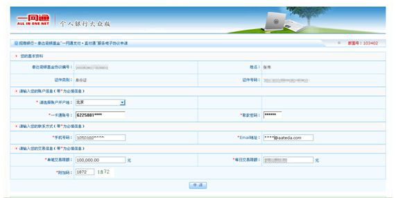 填写招行卡相关信息,输入招行卡支付密码进行身份验证