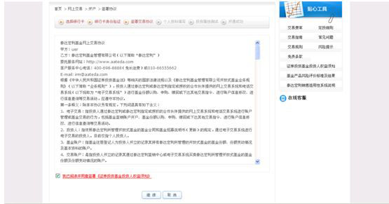 阅读《招商银行-泰达宏利基金电子协议》后,勾选"本人同意以上合约",点击"确定"